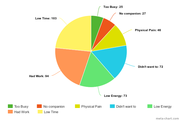 The majority of people who took our survey indicated they either didn’t have enough time, or had other things going on which prevented them from exercising