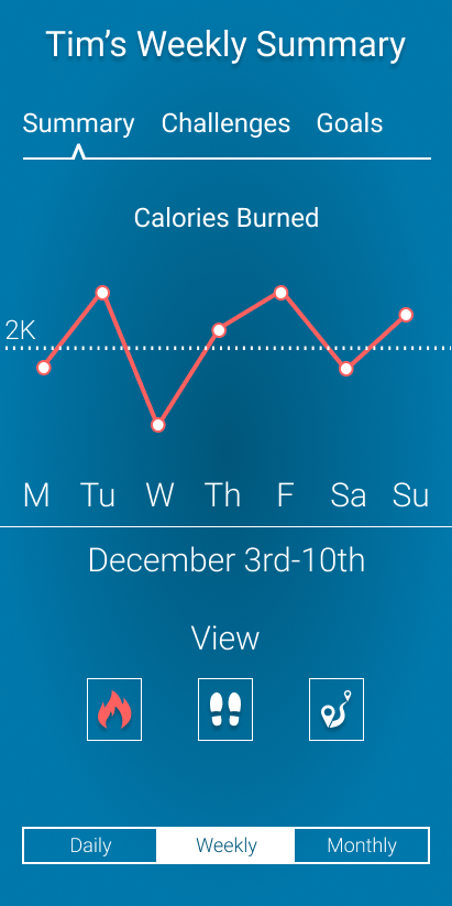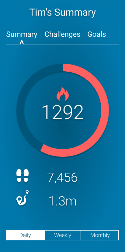 At the end of any activities, users can see a simple summary of everything they did during their walk including how many calories they burned, and what activities they participated in