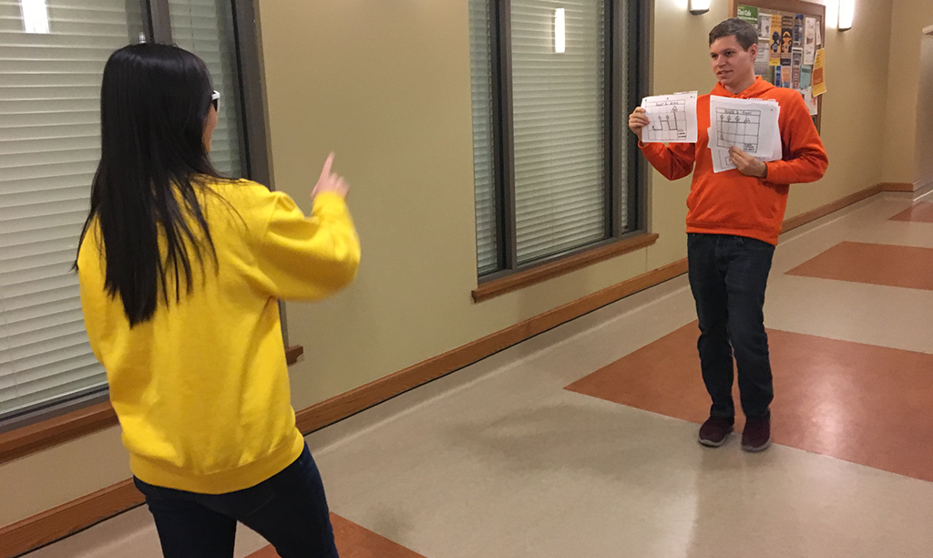 Once we narrowed down to one idea, we needed to figure out how on earth we were going to start creating a prototype for this concept. We thought it would be a good idea to start with paper prototyping since we didn’t have any experience working in AR/VR, and we paired our prototyping with user enactments to try and see if this concept had any merit.